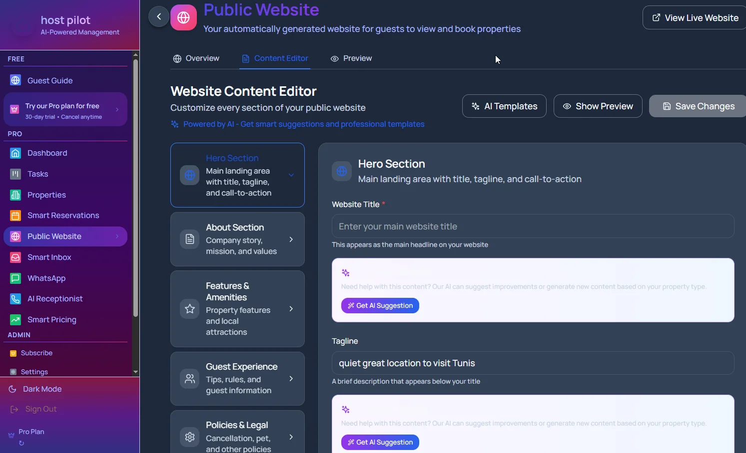 Add your photos and copy so guests see your property and your brand—not a generic template.